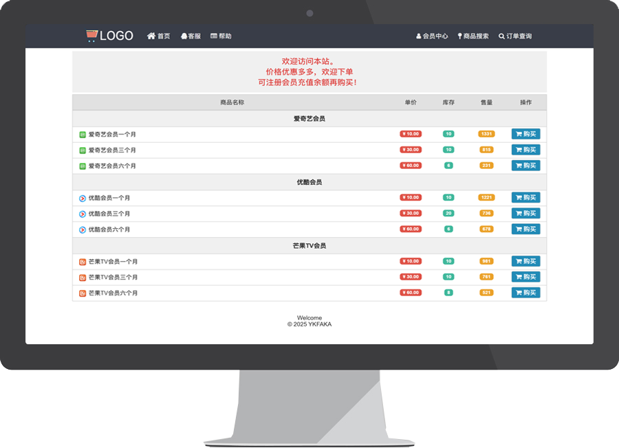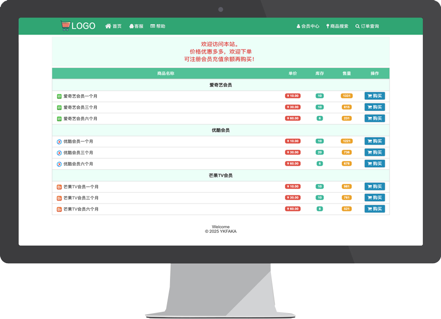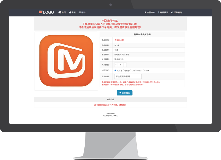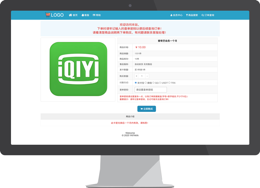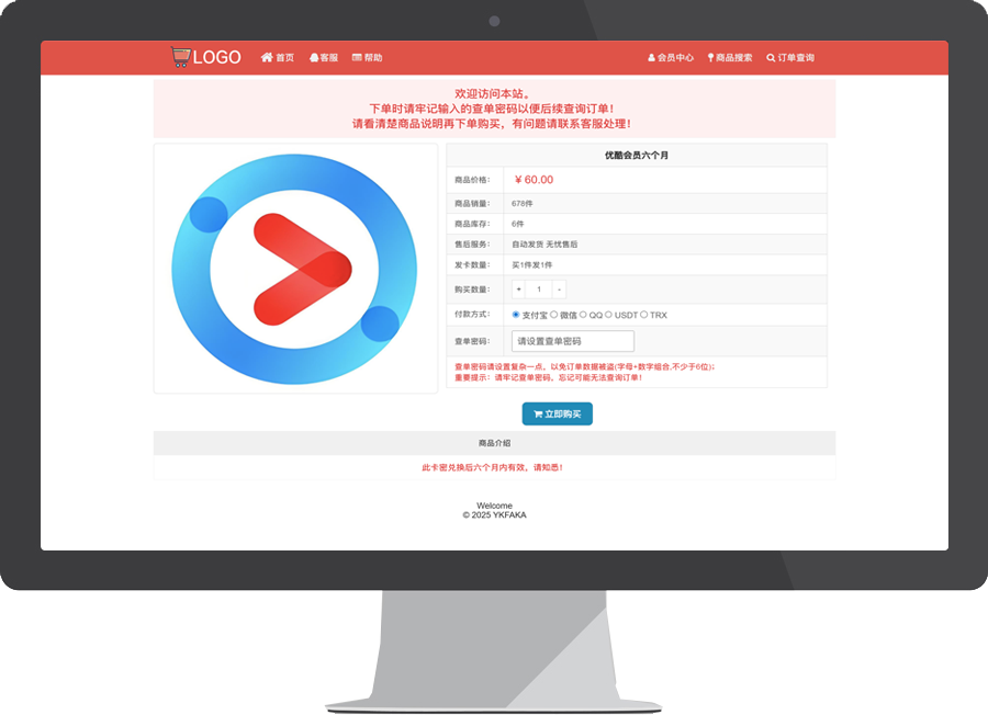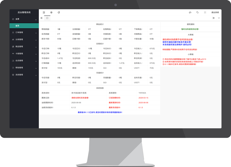 优卡自动发卡系统部分前台模板与后台管理界面展示