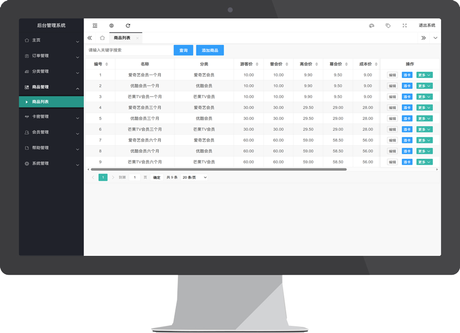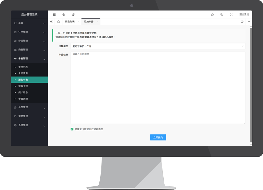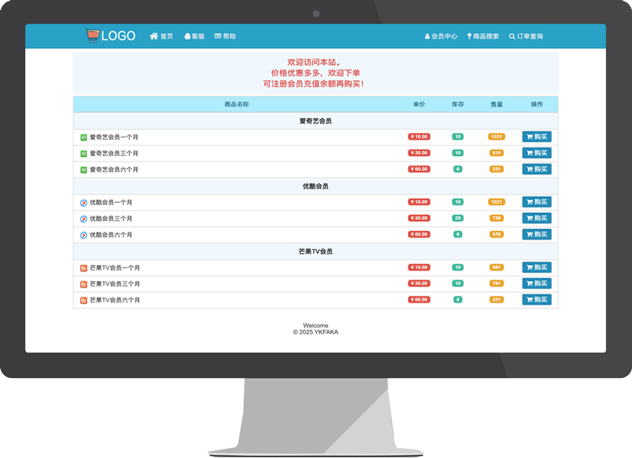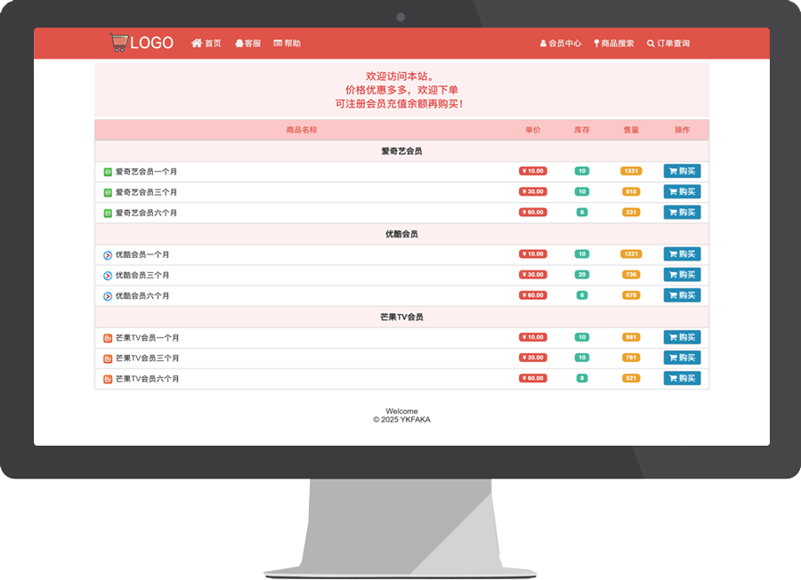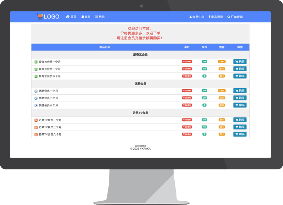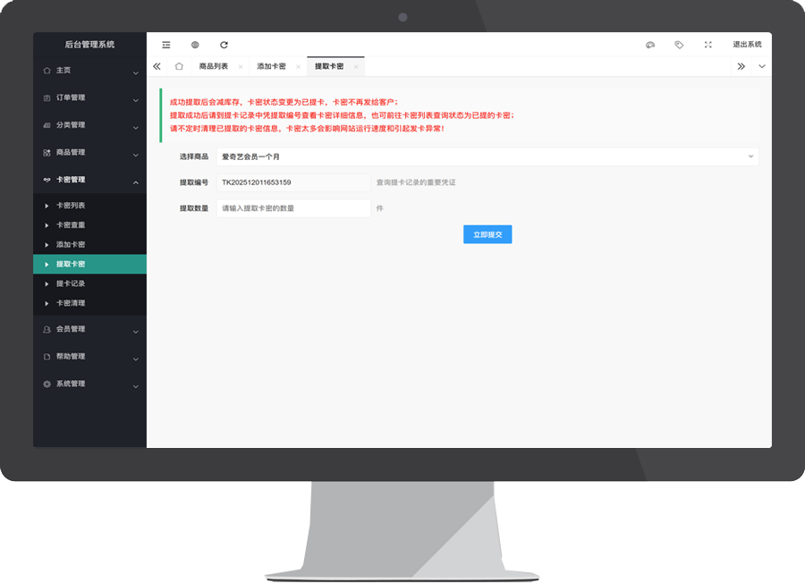 优卡自动发卡系统部分前台模板与后台管理界面展示